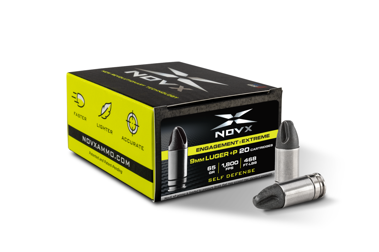 - 9MM LUGER +P ENGAGEMENT:EXTREME 65 GR/1,800 FPS/468 FT-LBS